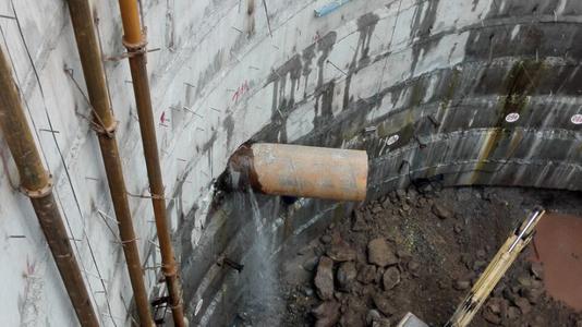 通过剔凿找清漏水点、漏水线,有针对性地进行堵漏。对漏水点、漏水线堵漏采取刚柔结合、膨胀增强结合外刚内柔的原则,即内部在缝内进行,采用刚柔结合、膨胀增强结合四道堵漏防线效果甚佳,即由里向外依次为柔、刚、柔、刚四道防线;对埋件周围漏水堵漏,剔凿一定深度后,采用无机渗透性刚性防水材料和速凝剂堵漏;对线管内部渗漏水堵漏,在堵漏时塞实;地下室工程堵漏只有从工程内部进行,方案合理,操作正确,才能获得良好效果。